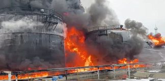 Ukrainian drone attack on Russian oil depot causes massive blaze